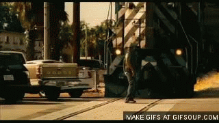 Вагоны летят неправильно. Я бы летел подругому - в стороны гармошкой.